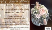 Készítsük el együtt saját őszi lakásdekorációinkat Pádár Andrea segítségével! Időpont: 2022. október 1. szombat, 15.00 óra Asztali dísz, textil tök készítés: 3.500 Ft/db, mely összeget a helyszínen készpénzben, vagy bankkártyával is lehet fizetni. A részvétel előzetes jelentkezéshez kötött az anyagszükséglet miatt.