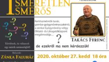 Vendégünk: Takács Ferenc kertészmérnök-tanár, gomba- és gyógynövényszakértő oktató, a zánkai Gyógynövény-völgy Ökoturisztikai Oktató- és Látogatóközpont megálmodója, de ezekről most NEM kérdezzük! Hol? Hogyan? Mikor? Miért? Kérdések és válaszok egy másik szemszögből. Helyszín: Zánka Faluház nagyterme, a megfelelő óvintézkedések betartása mellett. Időpont: 2020. október 27. kedd 18.00 óra
